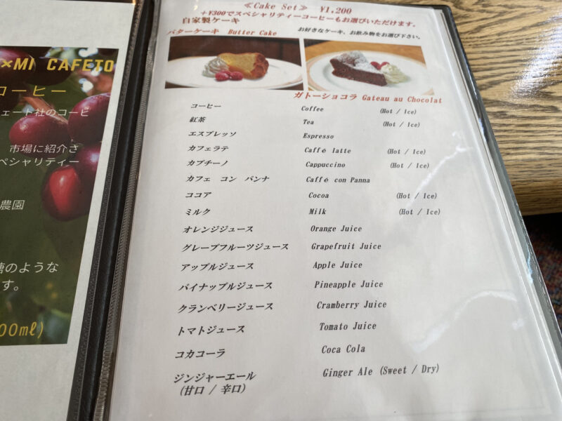 こちらはケーキセットのメニューです。