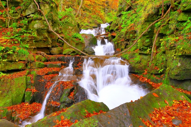 家族みんなで、迫力ある滝と綺麗に色づいた紅葉を見に、ぜひ訪れて