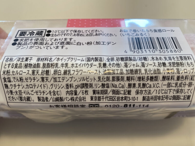 ローソンスイーツ「お餅で巻いたもち食感ロールいちごみるく」の値段、カロリー、栄養成分、原材料