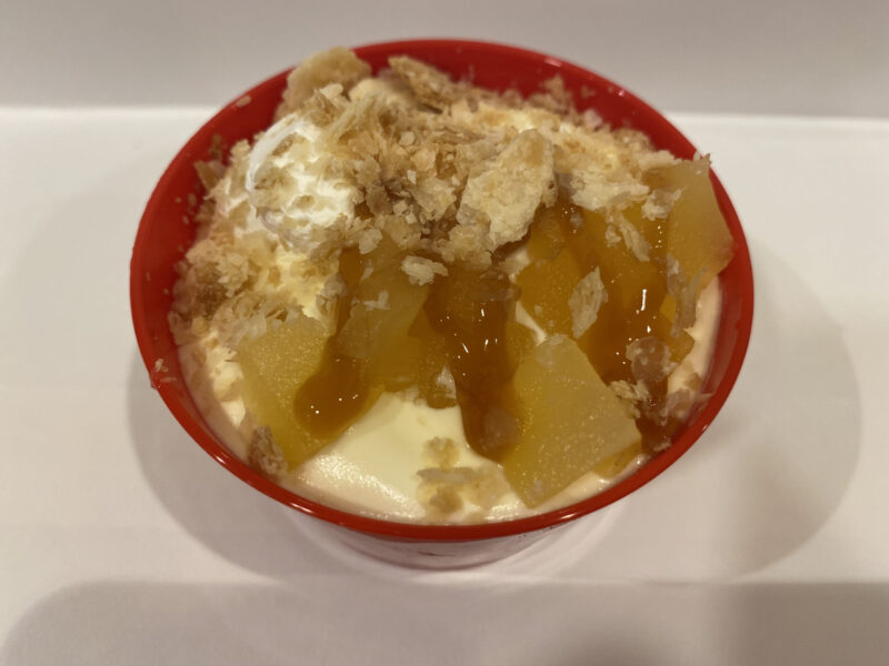 一口食べると、ダイスカットのりんごがスッキリした甘さでシャキシャキしていてとっても存在感があっておいしかったです。